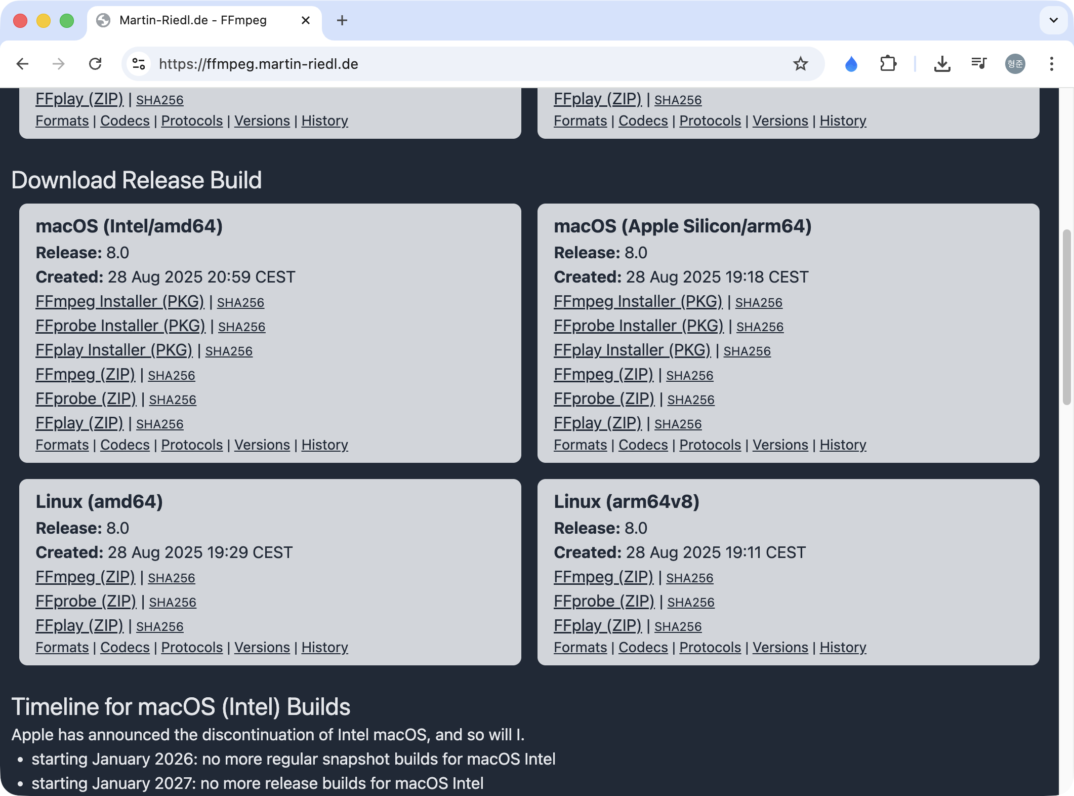 https://ffmpeg.martin-riedl.de/ 사이에서 ..