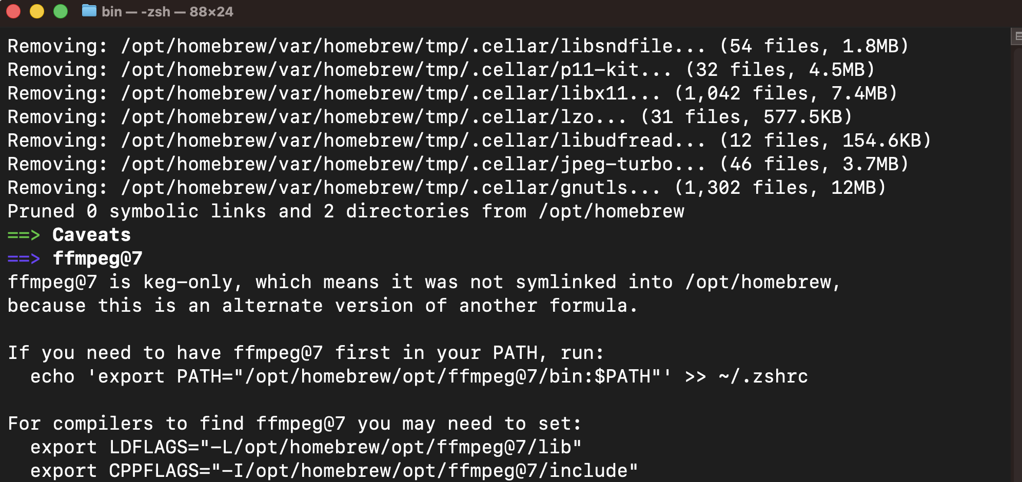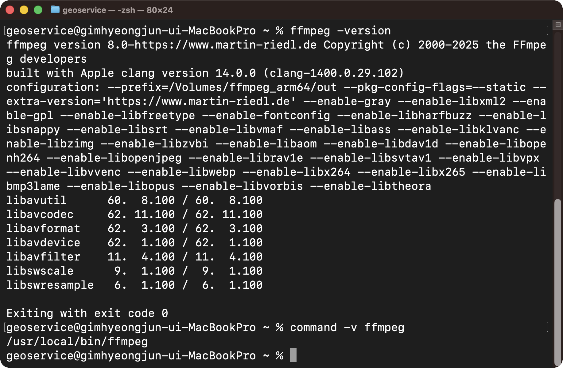 brew를 사용할 수 있는 환경이라면, 그냥 ‘brew install ffmpeg’로도 설치 가능함. 이렇게 설치했을때 PATH를 다음을 참고하여 설정할 필요가 있음.